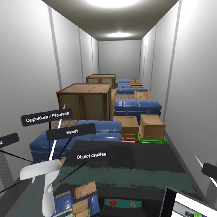 De game start altijd op dezelfde manier: spelers registreren zich eerst in een speciaal ontwikkelde tablet-app. Hier vullen ze hun naam en e-mailadres in, waarna de game automatisch koppelt welke score bij welke speler hoort.Daarna gaat de headset op en zien spelers elkaar terug als virtuele avatars. De eerste uitdaging: virtueel achter het stuur kruipen en een vrachtwagen veilig docken bij een supermarkt in een krap straatje. Dat vraagt precisie, ruimtelijk inzicht en stressbestendigheid. Na het docken volgt de tweede opdracht: de trailer laden met pallets in de meest efficiënte Tetris-vorm. Hier komen planvaardigheid en snelheid samen in een race tegen de klok. Het scoresysteem beloont zowel precisie als snelheid, waardoor iedere ronde spannend blijft tot het laatste moment. De ervaring draait in kiosk mode en reset automatisch zodra een speler de headset afzet via de proximity sensor. Dankzij de snelle doorlooptijd kan één VR-set op een beursdag tot wel 60 matches draaien – en iedere ronde levert directe, bruikbare leadgegevens op.